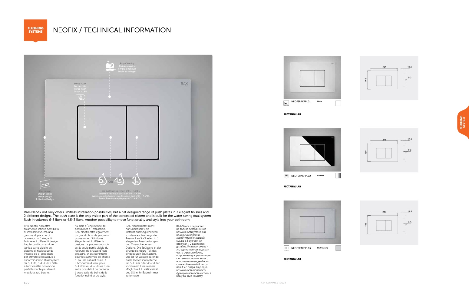 RAK-Neofix not only offers limitless installation possibilities, but a flat designed range of push plates in 3 elegant finishes and