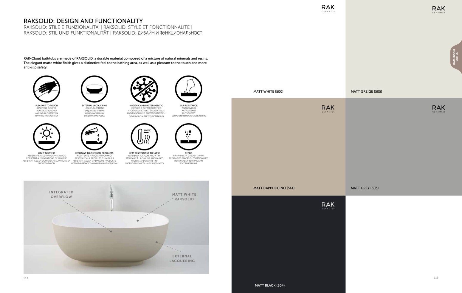 RAK-Cloud bathtubs are made of RAKSOLID, a durable material composed of a mixture of natural minerals and resins.