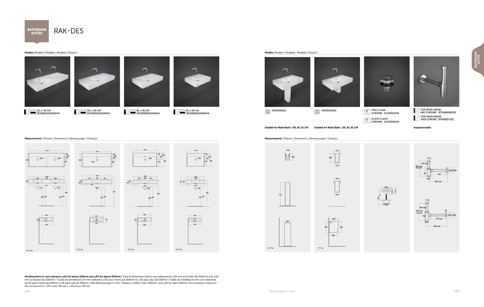 All dimensions in mm tolerance ±5% for below 200mm and ±3% for above 200mm | Tutte le dimensioni hanno una tolleranza di ±5% mm al di sotto dei 200mm e di ±3%