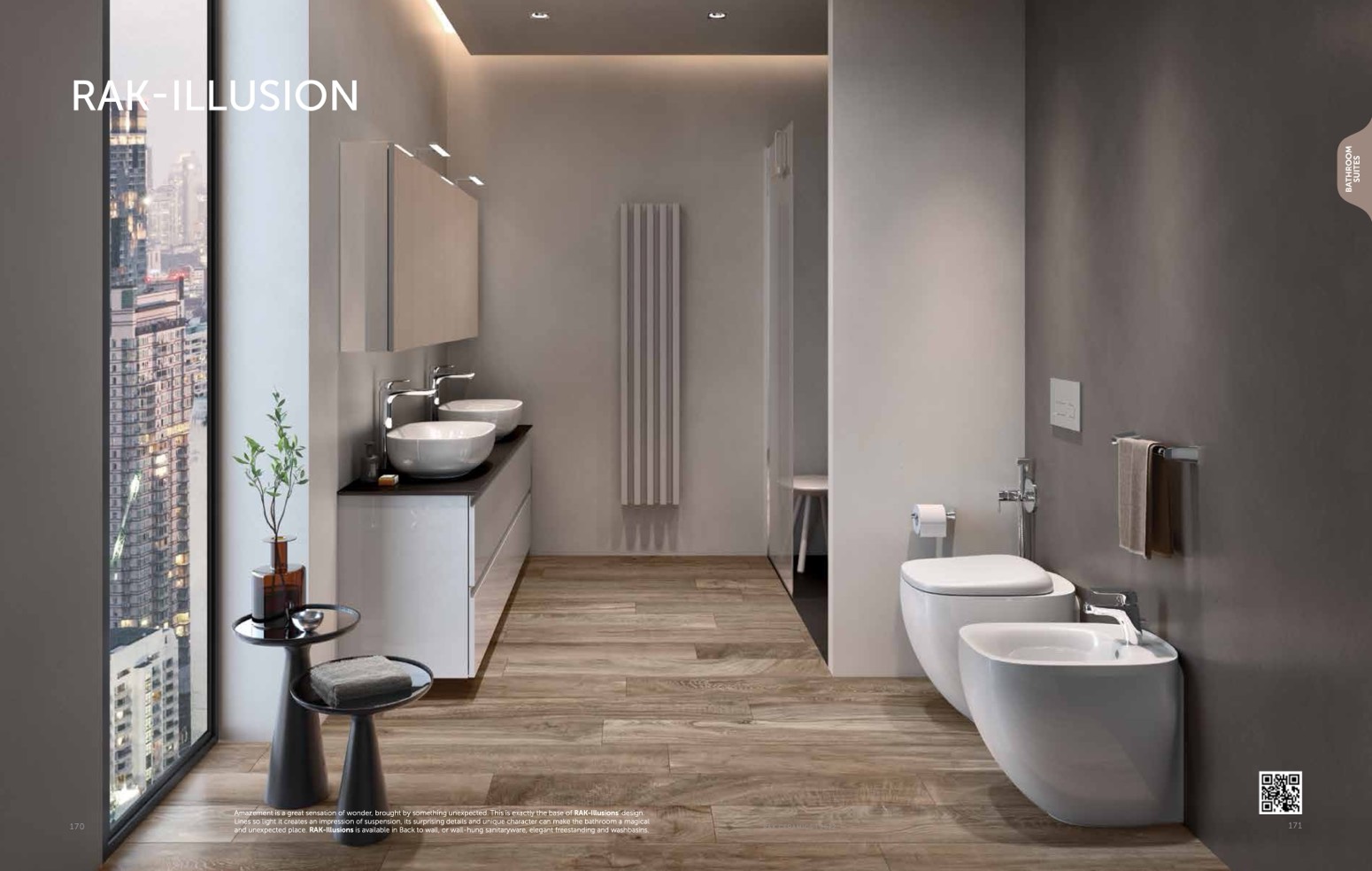 and unexpected place. RAK-Illusions is available in Back to wall, or wall-hung sanitaryware, elegant freestanding and washbasins.