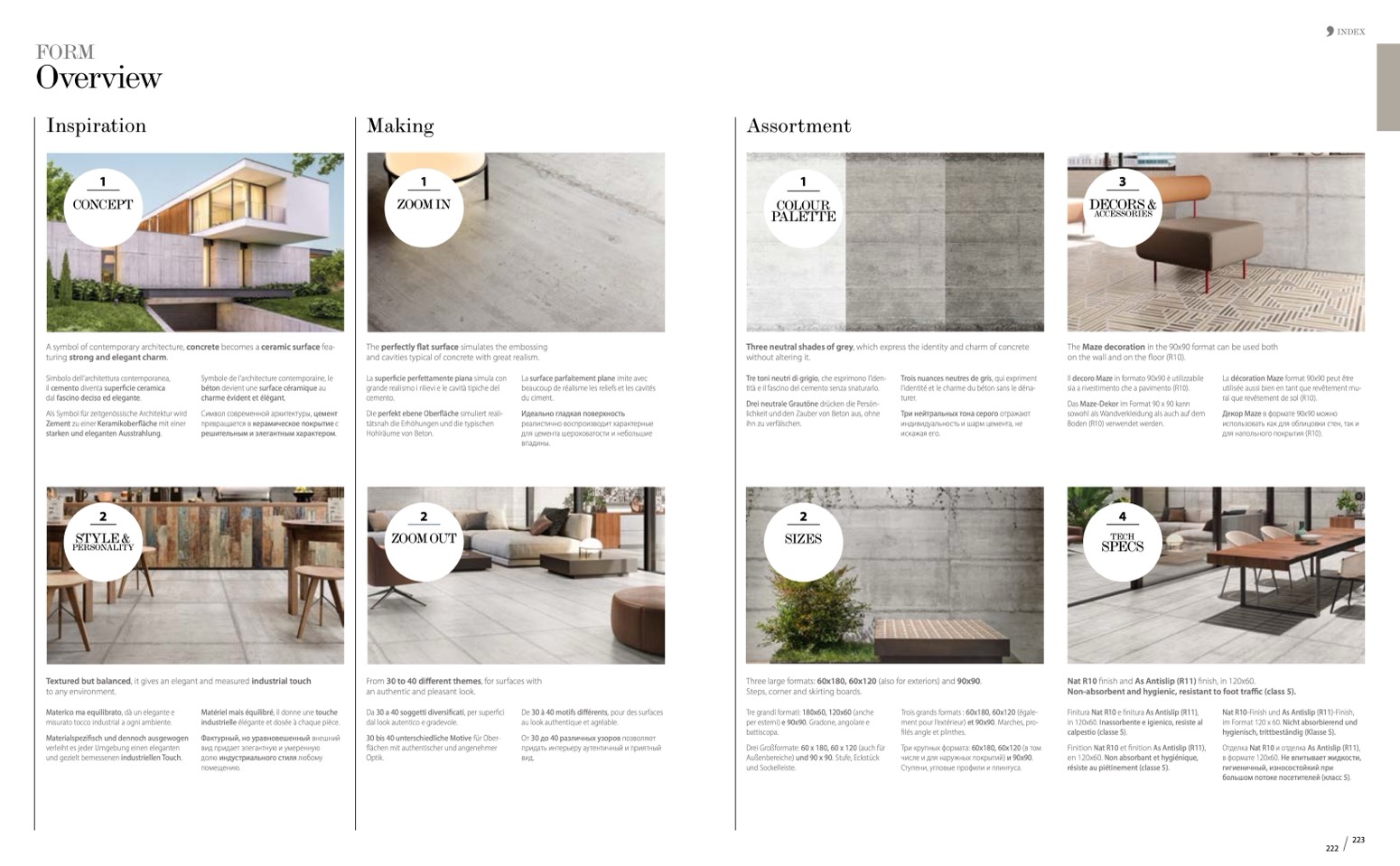 A symbol of contemporary architecture, concrete becomes a ceramic surface fea-