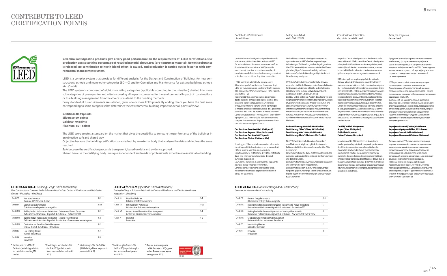 Ceramica Sant’Agostino products give a very good performance on the requirements of LEED certifications. Our