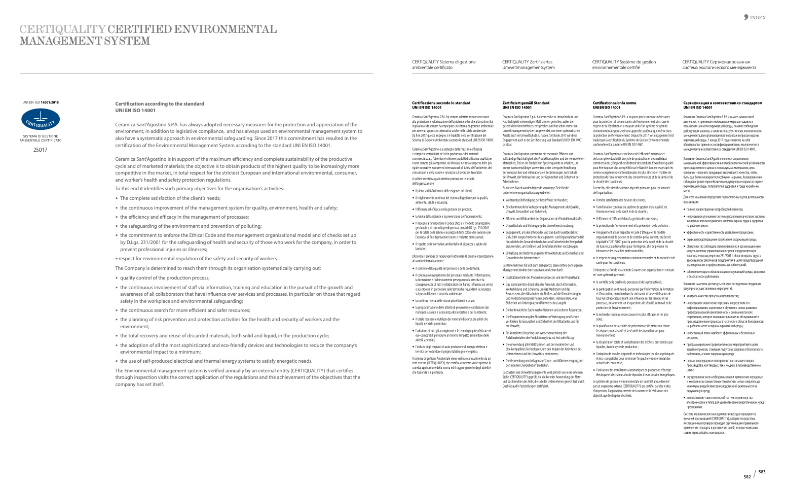 certification of the Environmental Management System according to the standard UNI EN ISO 14001.
