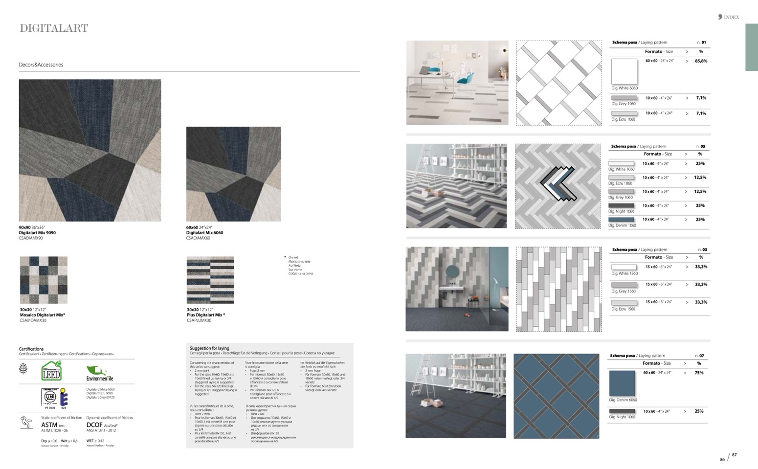 • For the sizes 60x120 lined up