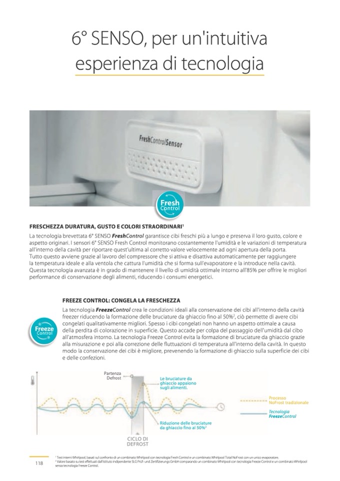Valore basato su test effettuati dall'istituto indipendente SLG Prüf- und Zertifizierungs GmbH comparando un combinato Whirlpool con tecnologia Freeze Control e un combinato Whirlpool