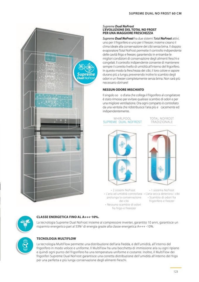 frigoriferi Supreme Dual NoFrost garantisce una corretta distribuzione dell'umidità all'interno del frigo