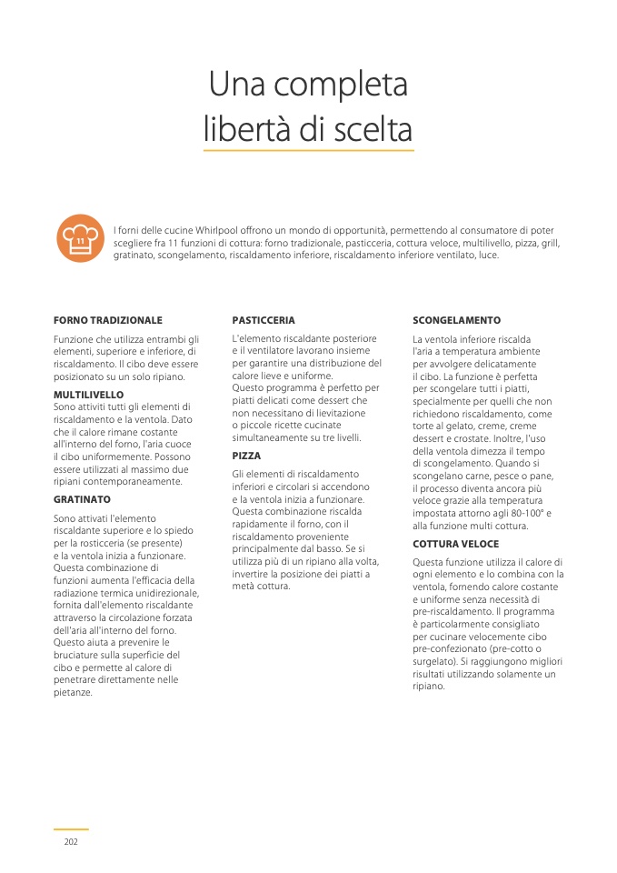 scegliere fra 11 funzioni di cottura: forno tradizionale, pasticceria, cottura veloce, multilivello, pizza, grill,