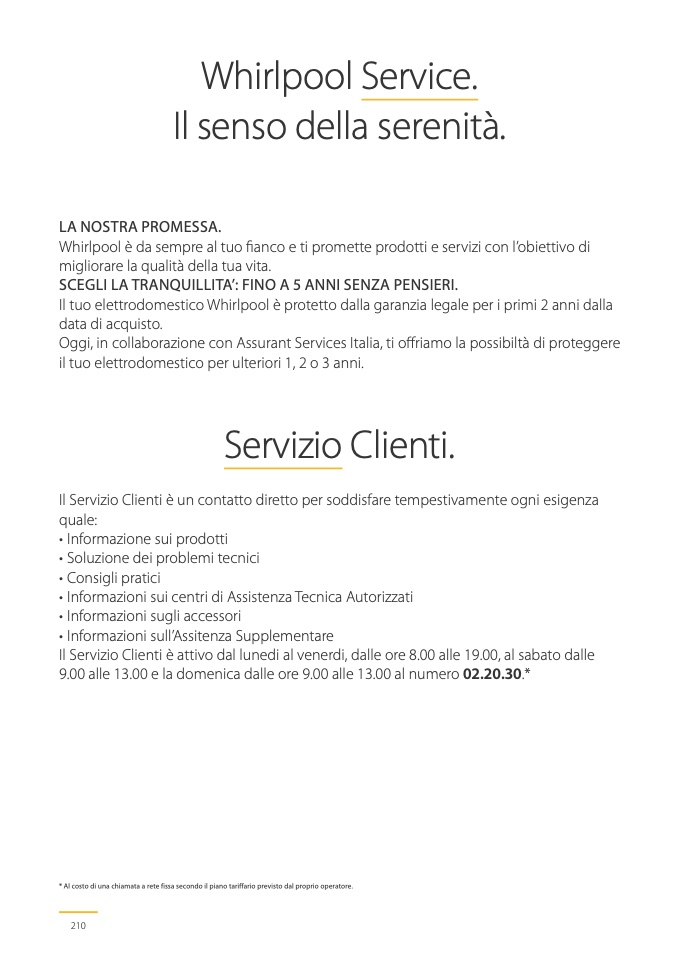 Il tuo elettrodomestico Whirlpool è protetto dalla garanzia legale per i primi 2 anni dalla