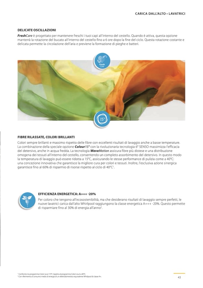 nuove lavatrici carica dall’alto Whirlpool raggiungono la classe energetica A+++ -20%. Questo permette