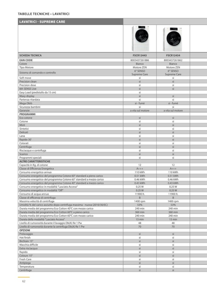 Livello di rumorosità durante il lavaggio Db(A) Re 1 Pw