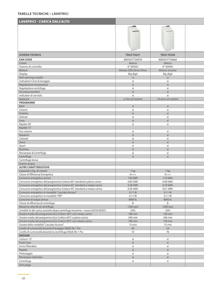 Livello di rumorosità durante il lavaggio Db(A) Re 1 Pw