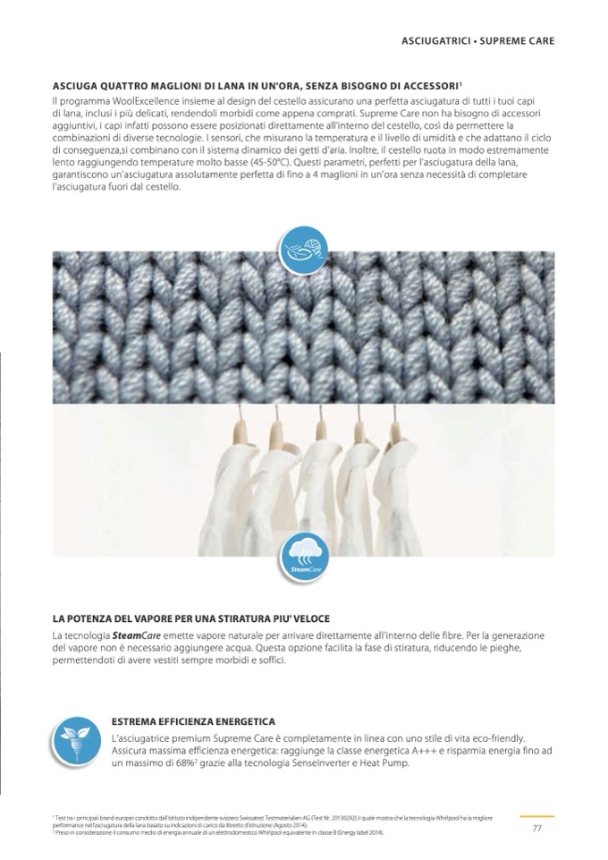 Il programma WoolExcellence insieme al design del cestello assicurano una perfetta asciugatura di tutti i tuoi capi
