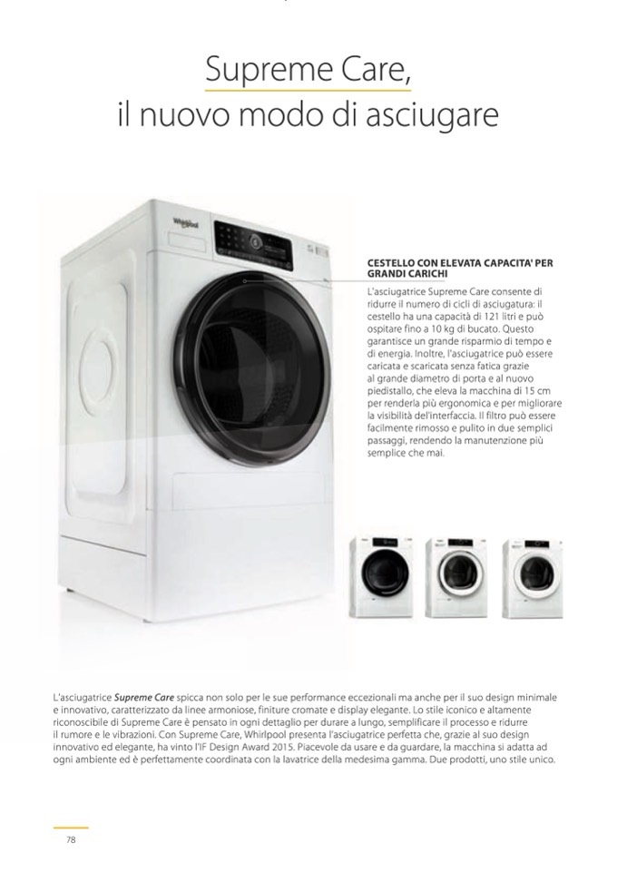 il rumore e le vibrazioni. Con Supreme Care, Whirlpool presenta l’asciugatrice perfetta che, grazie al suo design