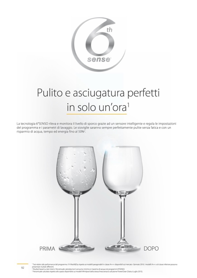 Percentuale calcolata rispetto allo spazio disponibile sui modelli Whirlpool della stessa linea senza la soluzione PowerClean (Status Luglio 2015).