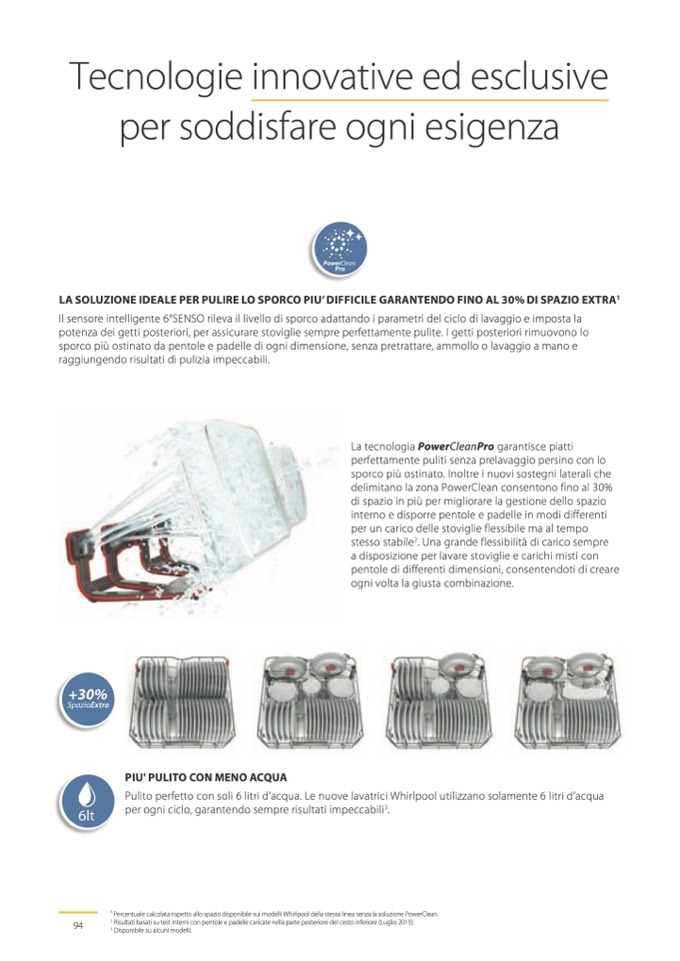1 Percentuale calcolata rispetto allo spazio disponibile sui modelli Whirlpool della stessa linea senza la soluzione PowerClean.