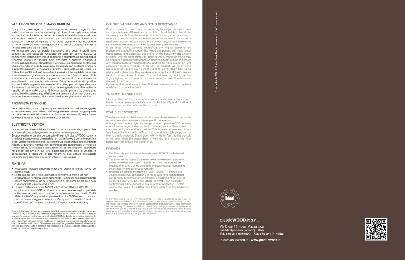 solo previo assenso scritto da parte di plasticWOOD.it. Queste informazioni sono fornite