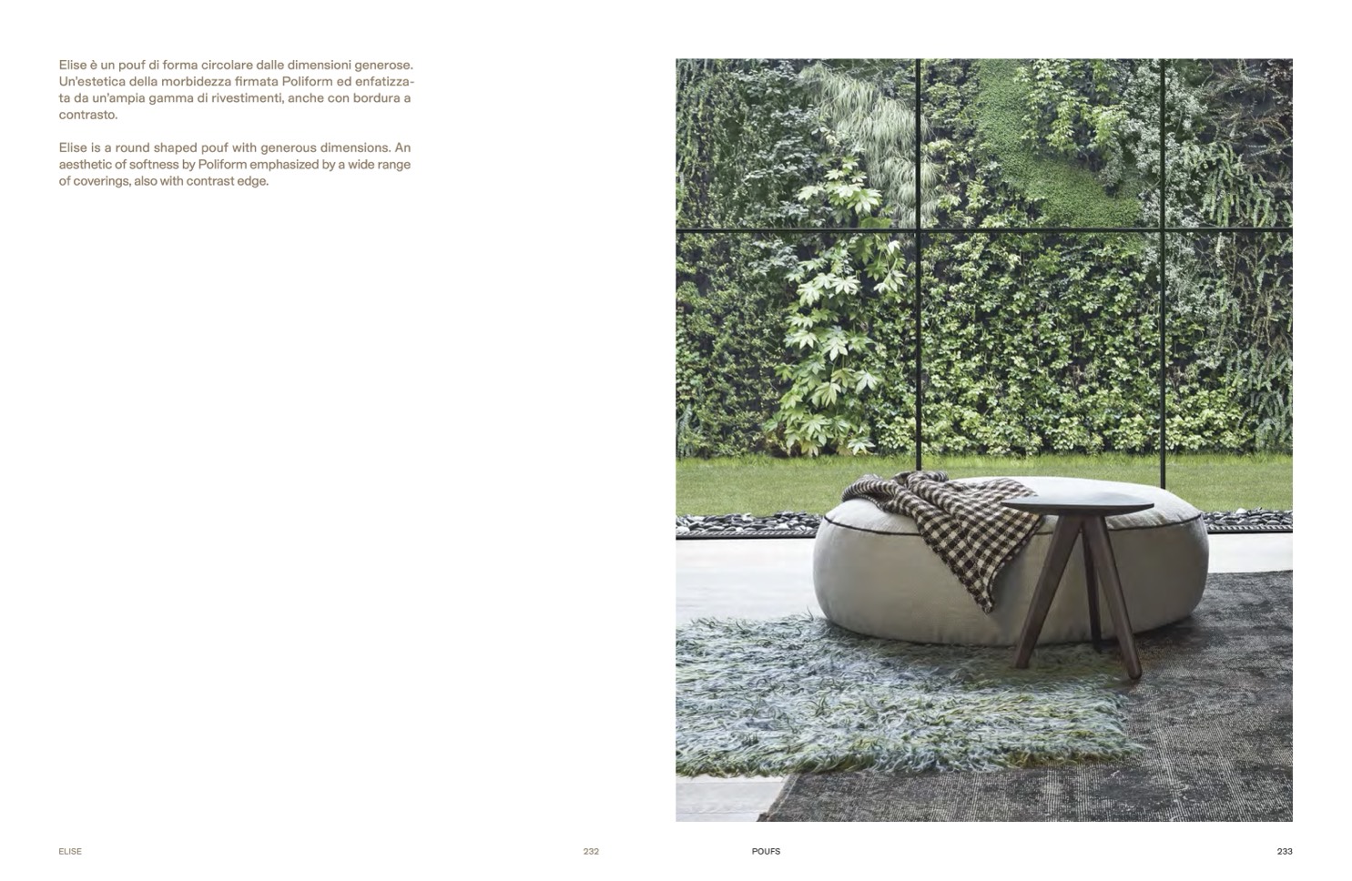 Elise è un pouf di forma circolare dalle dimensioni generose.