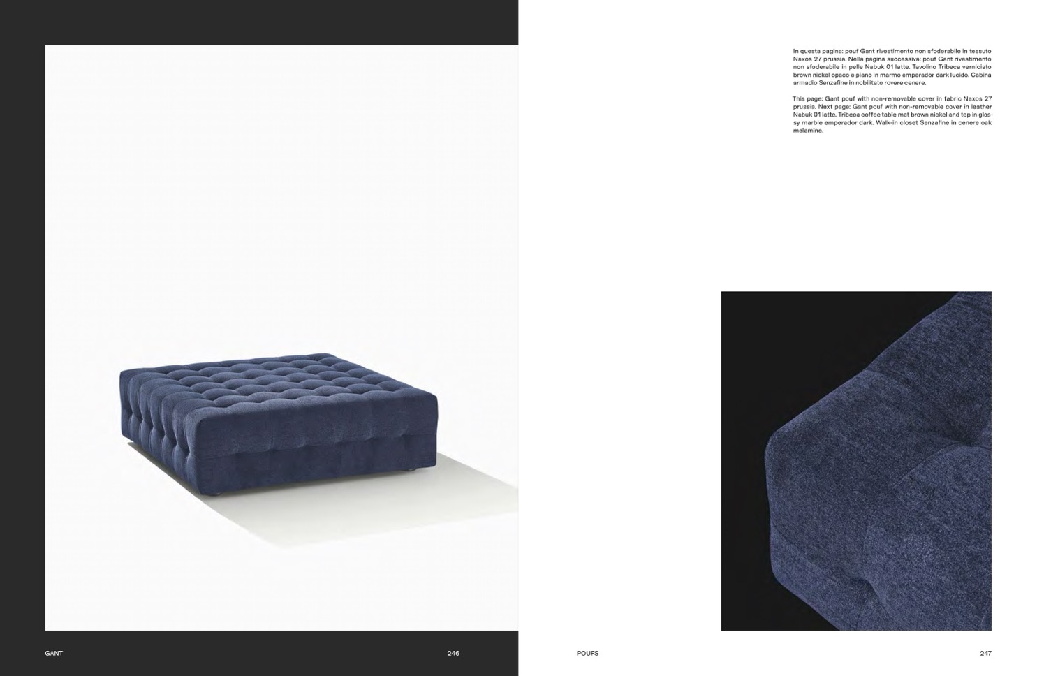 Naxos 27 prussia. Nella pagina successiva: pouf Gant rivestimento