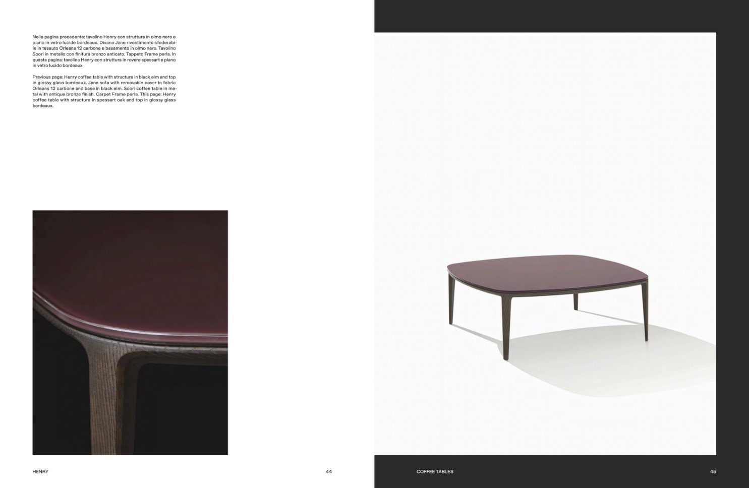 Previous page: Henry coffee table with structure in black elm and top
