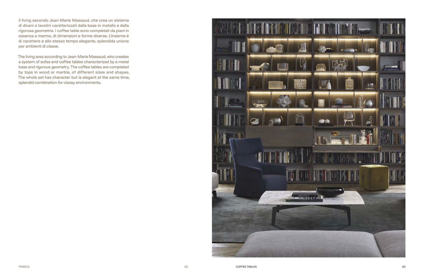rigorosa geometria. I coffee table sono completati da piani in