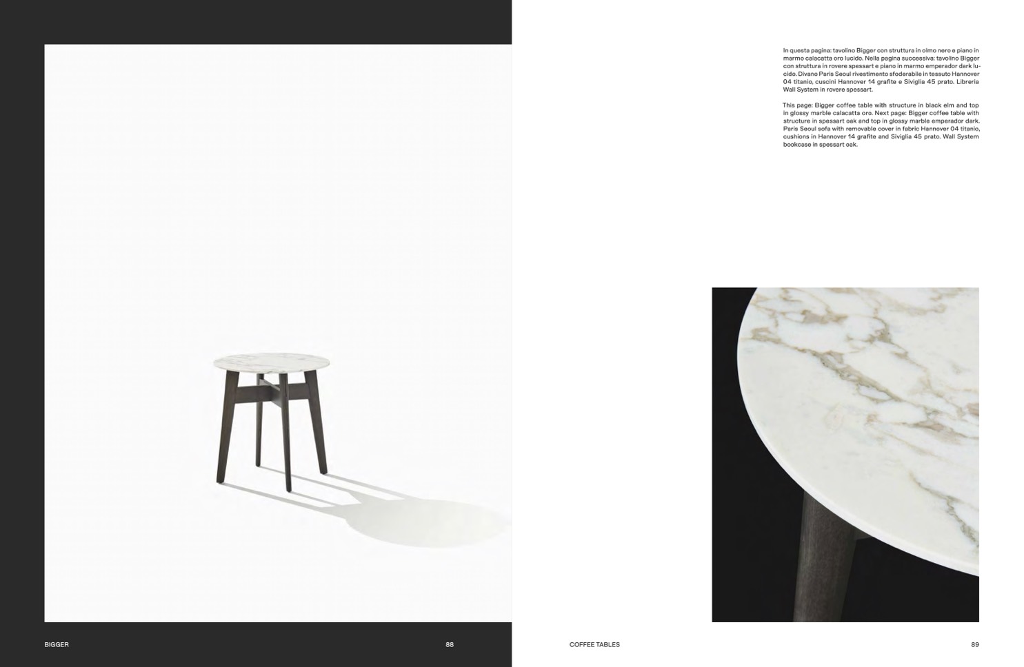 marmo calacatta oro lucido. Nella pagina successiva: tavolino Bigger