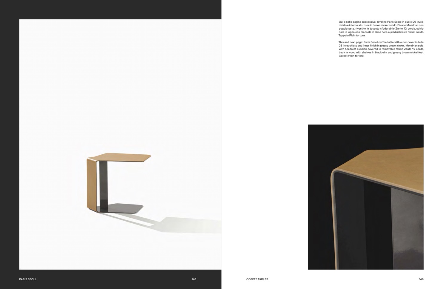 This and next page: Paris Seoul coffee table with outer cover in hide
