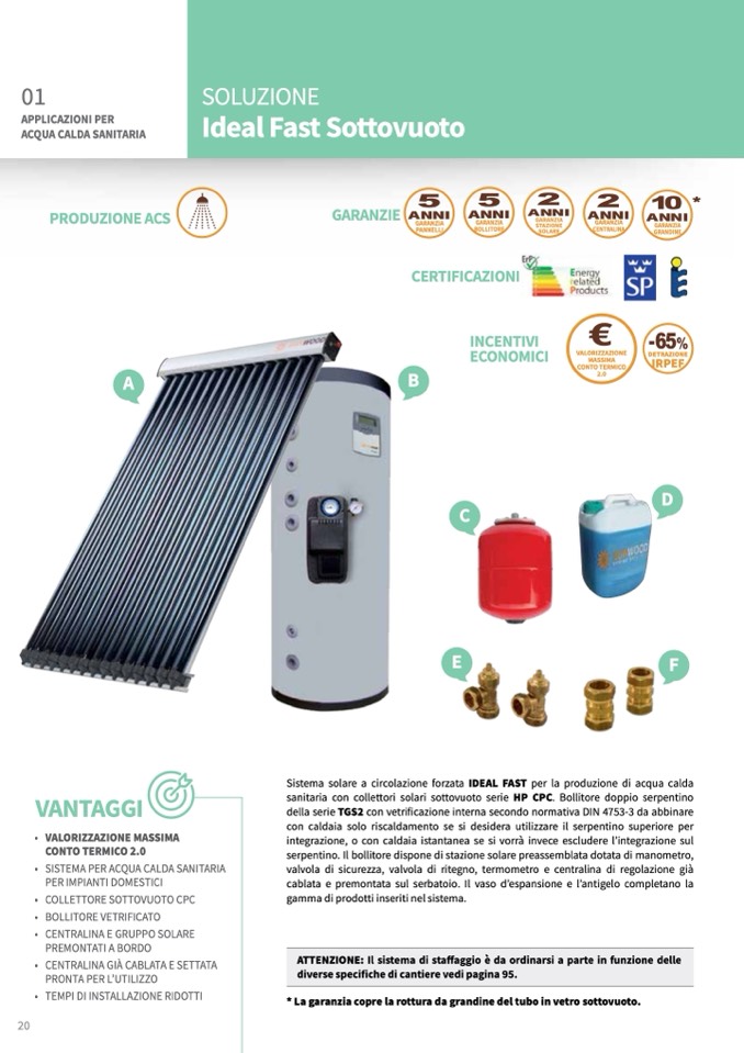 Sistema solare a circolazione forzata IDEAL FAST per la produzione di acqua calda