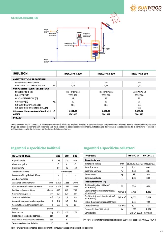 À TABELLA: il dimensionamento è riferito ad impianti installati in centro Italia con campo collettori orientati a sud e orizzonte libero; distanza