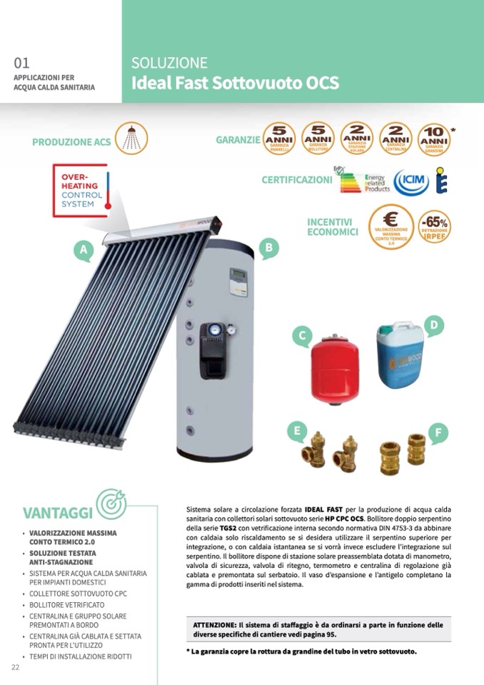 Sistema solare a circolazione forzata IDEAL FAST per la produzione di acqua calda