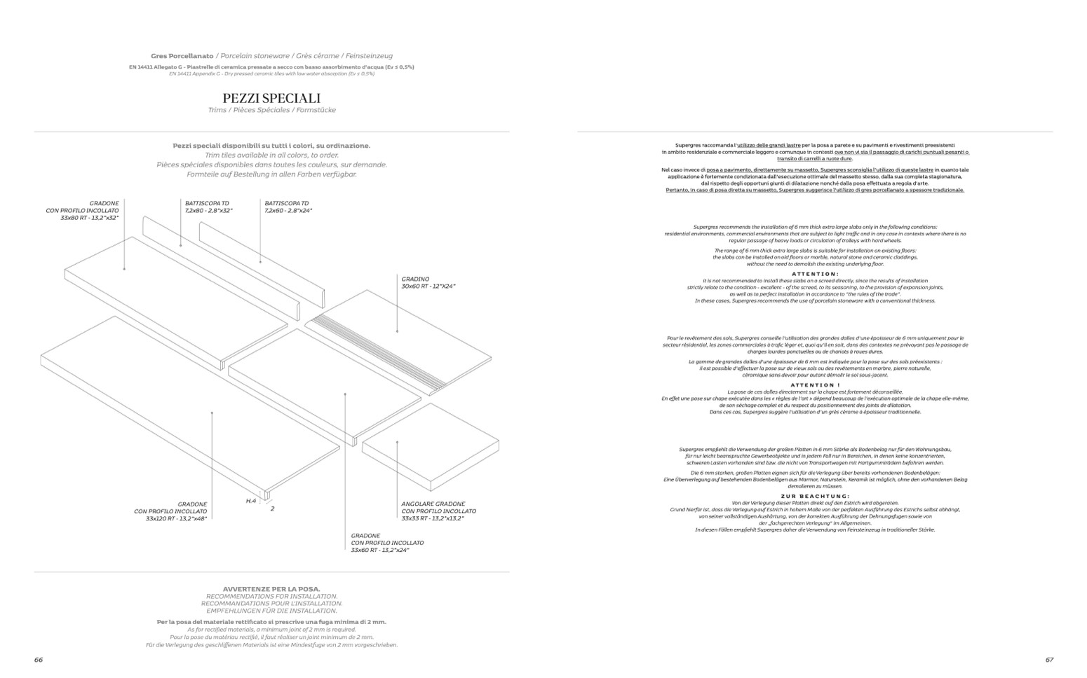 In diesen Fällen empfiehlt Supergres daher die Verwendung von Feinsteinzeug in traditioneller Stärke.