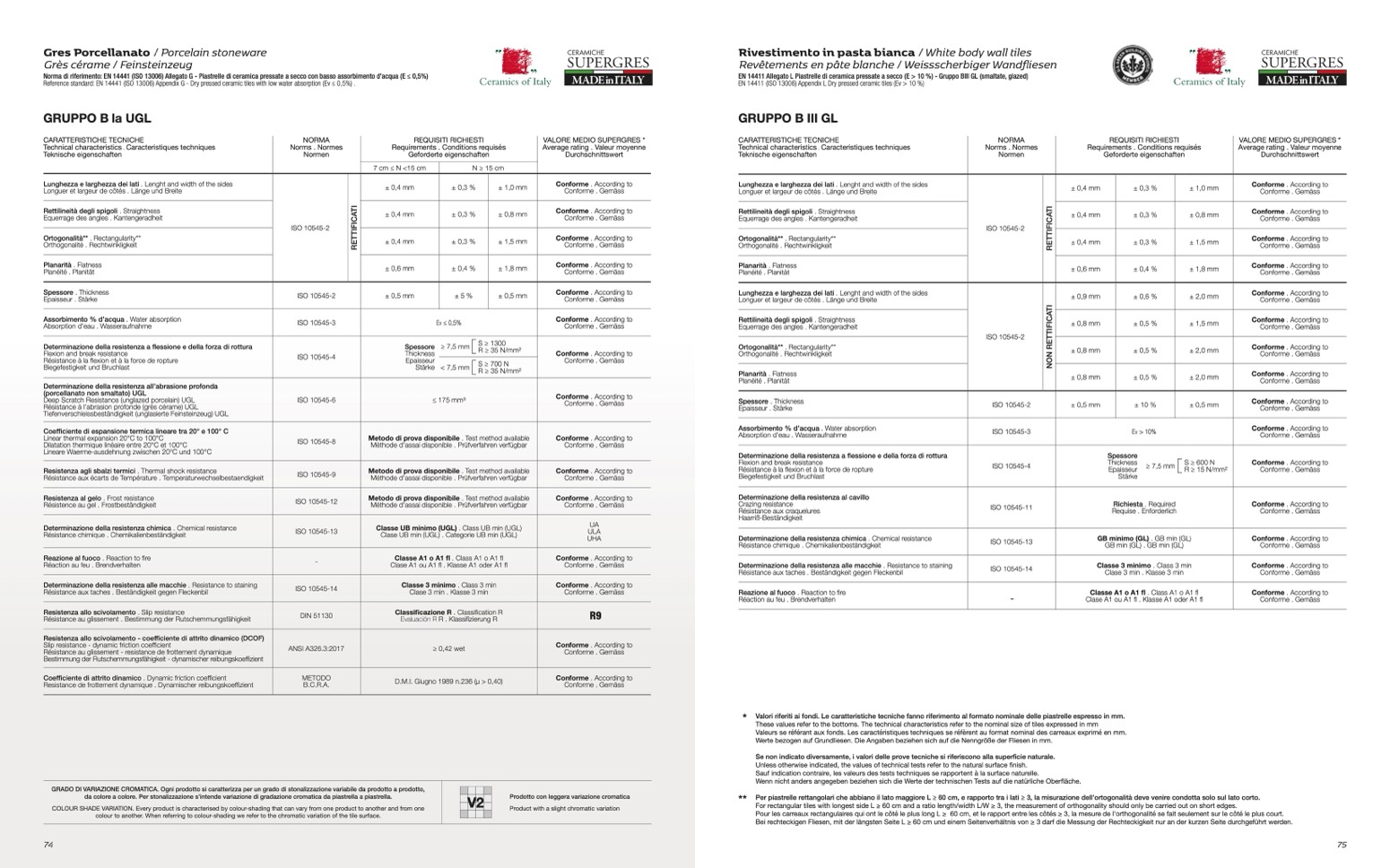 Norma di riferimento: EN 14441 (ISO 13006) Allegato G - Piastrelle di ceramica pressate a secco con basso assorbimento d’acqua (E ≤ 0,5%)