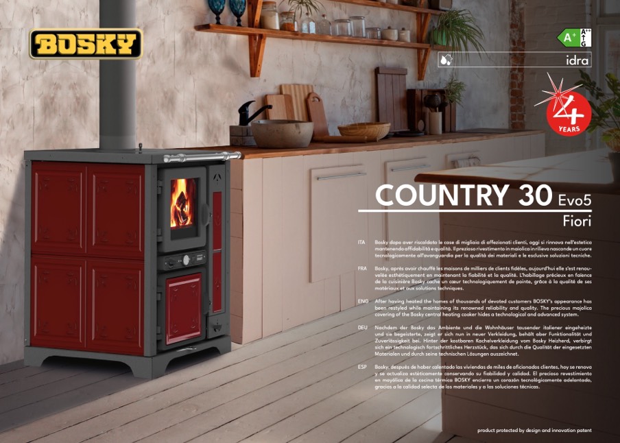 covering of the Bosky central heating cooker hides a technological and advanced system.