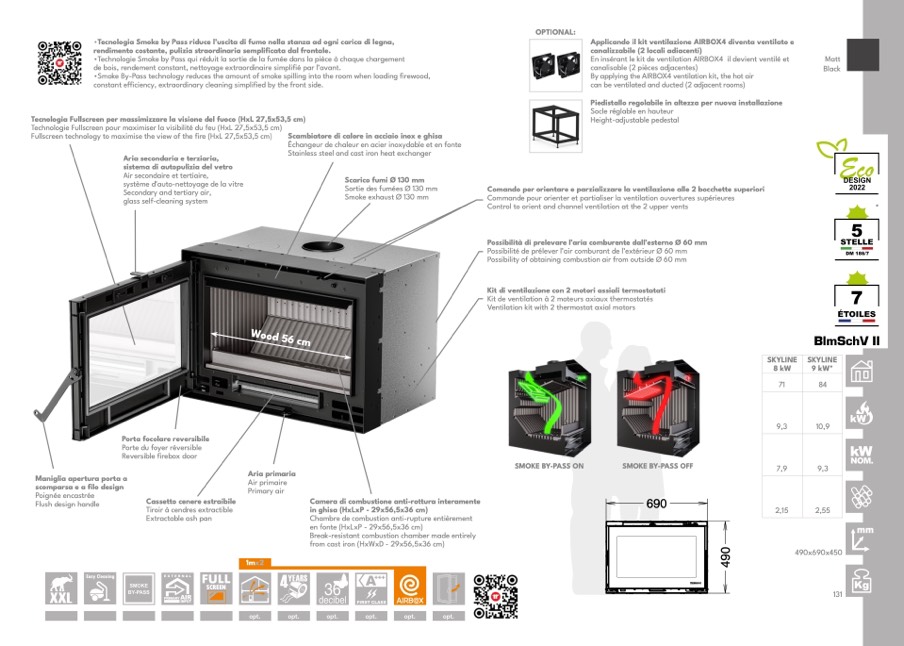 •Tecnologia Smoke by Pass riduce l’uscita di fumo nella stanza ad ogni carica di legna,