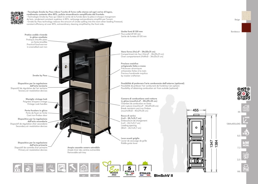 •Tecnologia Smoke by Pass riduce l’uscita di fumo nella stanza ad ogni carica di legna,