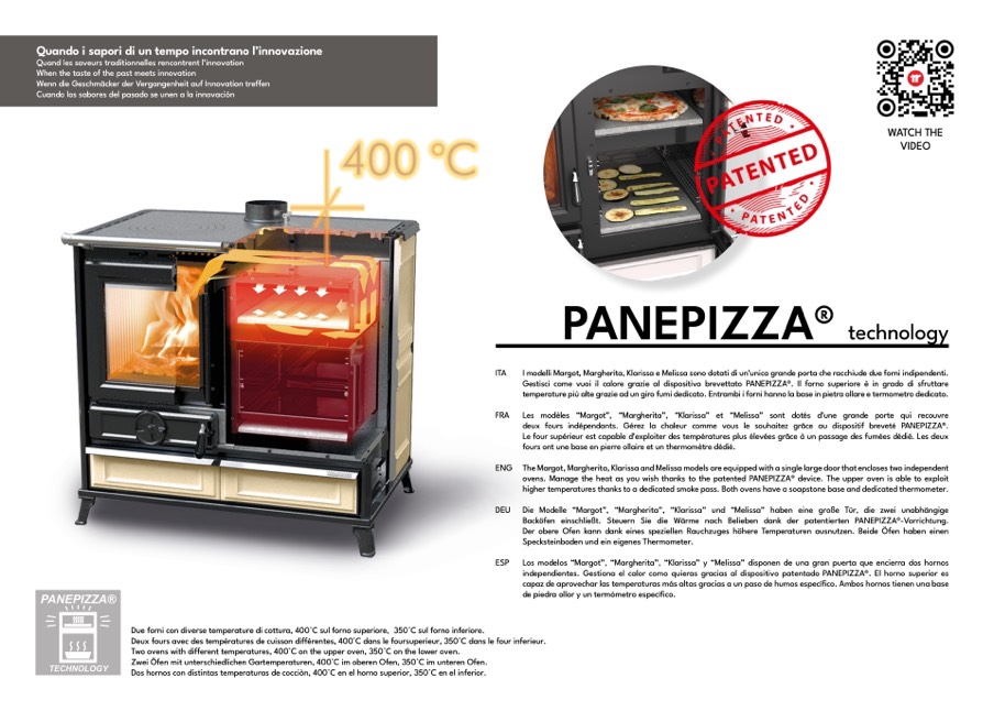ovens. Manage the heat as you wish thanks to the patented PANEPIZZA® device. The upper oven is able to exploit