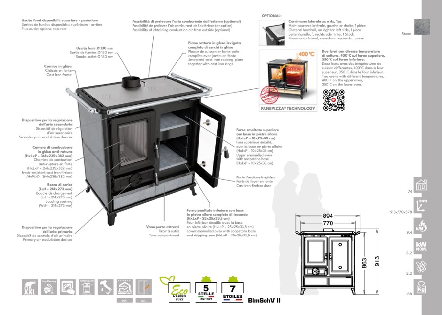 Uscite fumi disponibili: superiore - posteriore