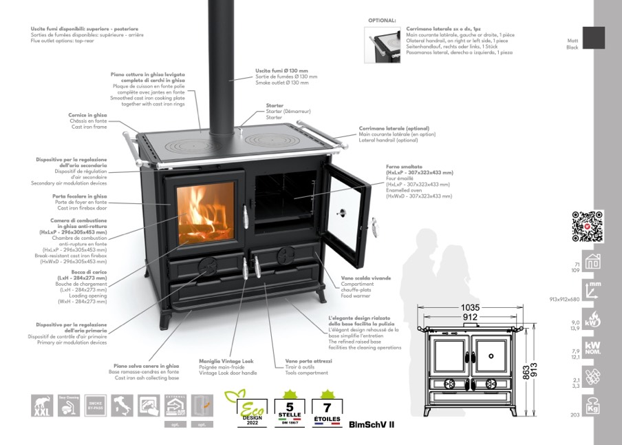 Uscite fumi disponibili: superiore - posteriore