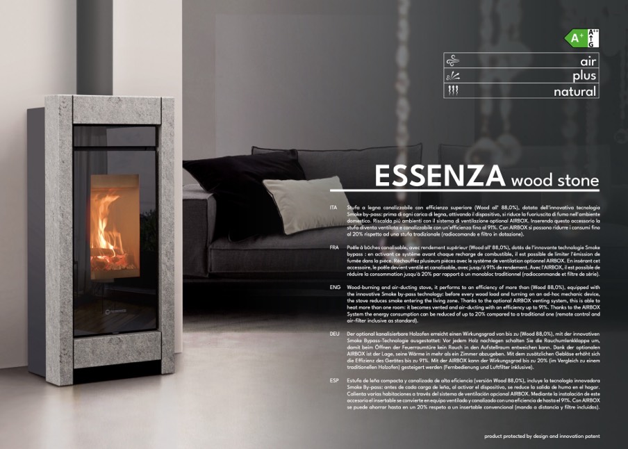 the stove reduces smoke entering the living zone. Thanks to the optional AIRBOX venting system, this is able to