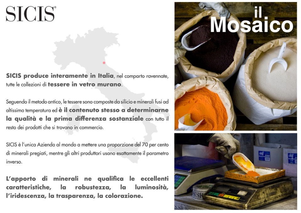 Seguendo il metodo antico, le tessere sono composte da silicio e minerali fusi ad