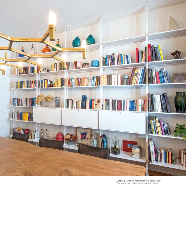 Sistema a parete con ribaltine, finitura bianco opaco