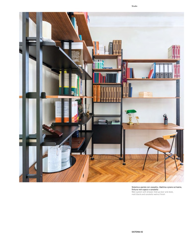 Sistema a parete con cassetto, ribaltina e piano scrivania,