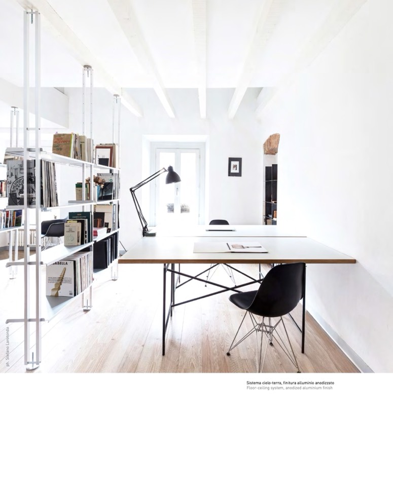 Floor-ceiling system, anodized aluminium finish