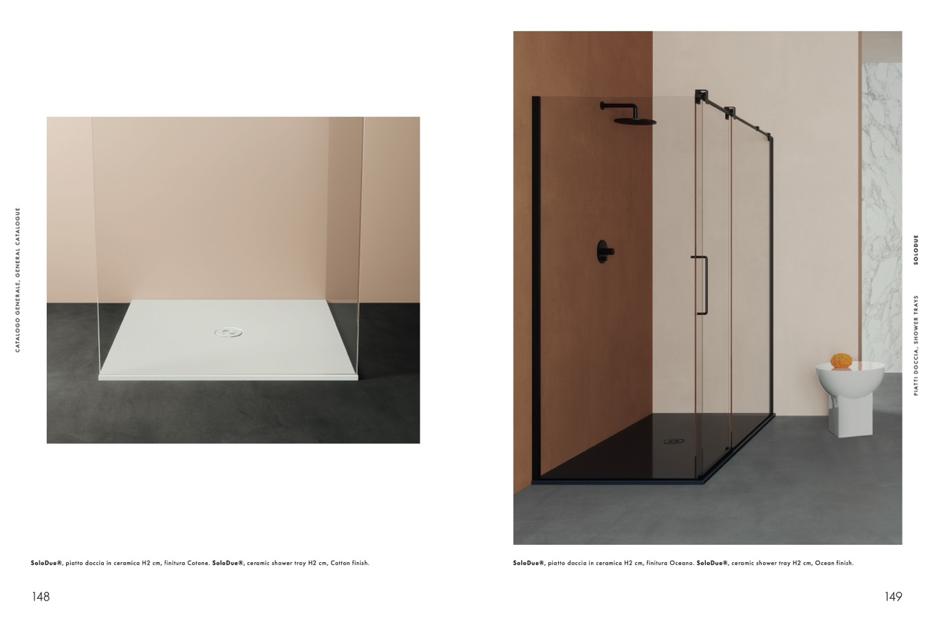 SoloDue®, piatto doccia in ceramica H2 cm, finitura Oceano. SoloDue®, ceramic shower tray H2 cm, Ocean finish.