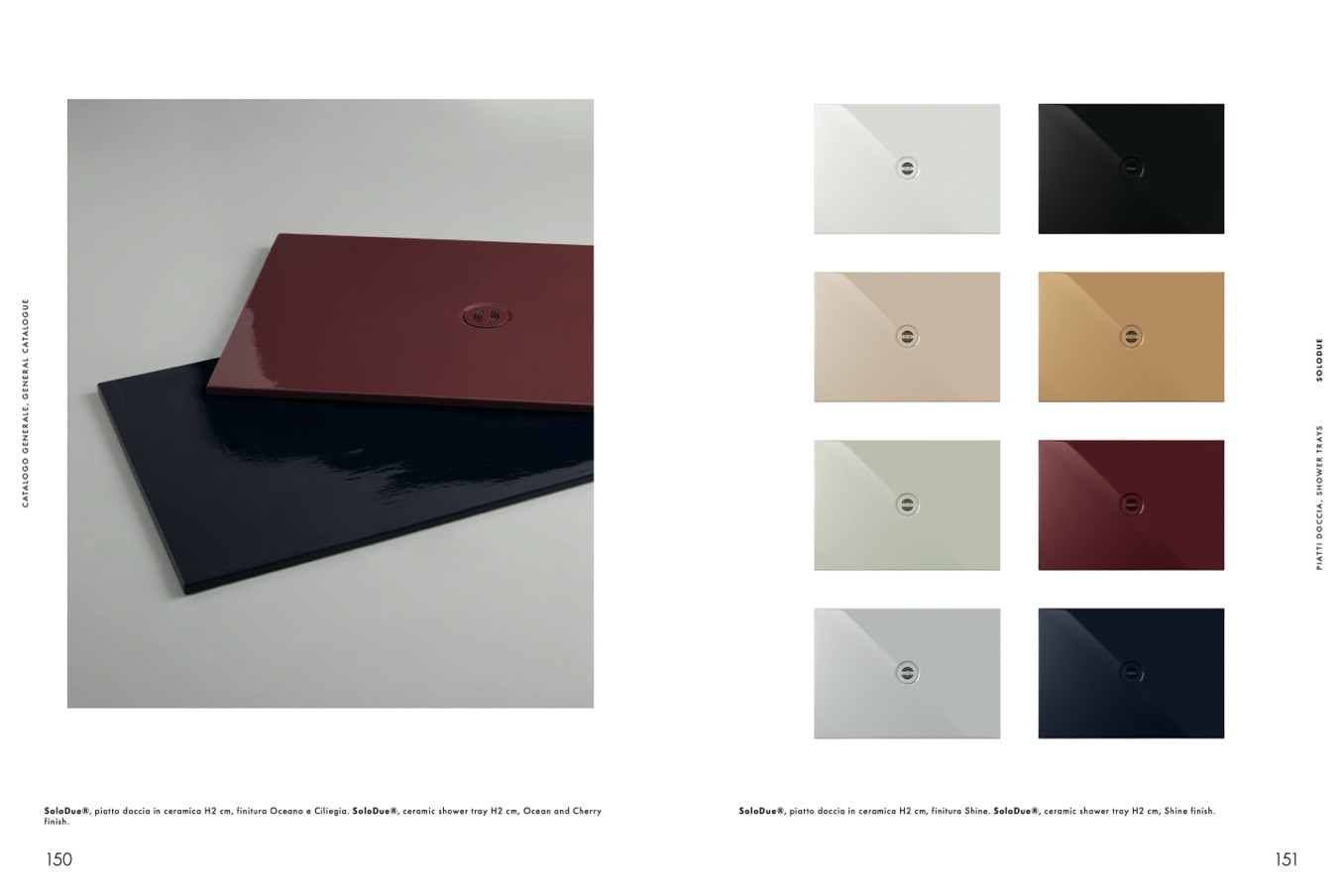SoloDue®, piatto doccia in ceramica H2 cm, finitura Oceano e Ciliegia. SoloDue®, ceramic shower tray H2 cm, Ocean and Cherry