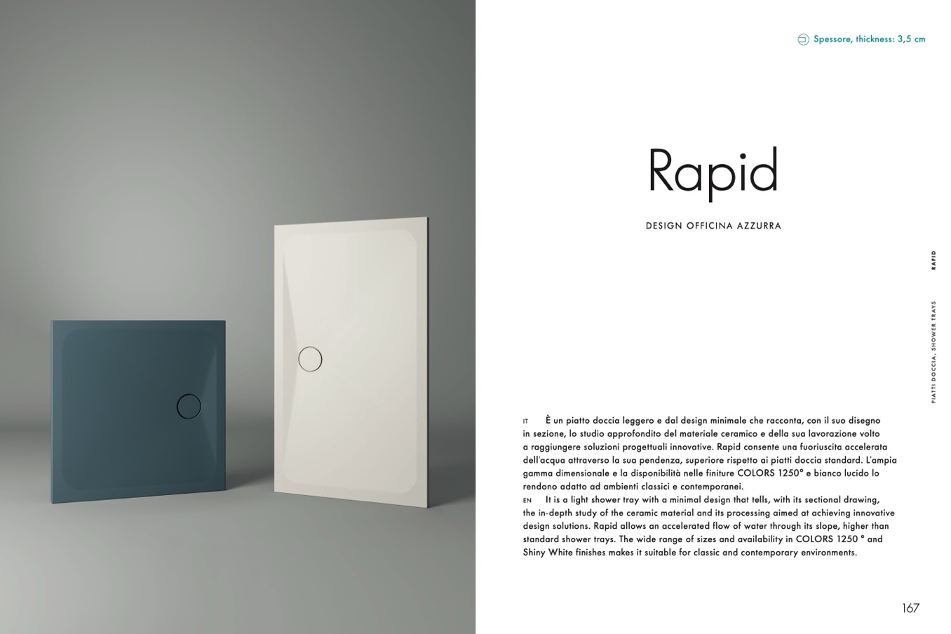 standard shower trays. The wide range of sizes and availability in COLORS 1250 ° and