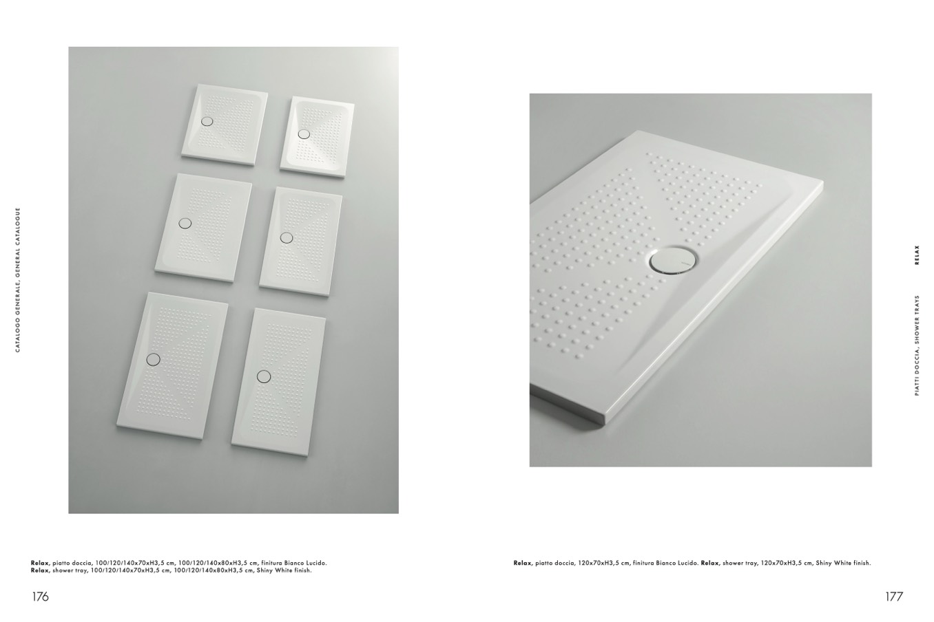 Relax, shower tray, 100/120/140x70xH3,5 cm, 100/120/140x80xH3,5 cm, Shiny White finish.