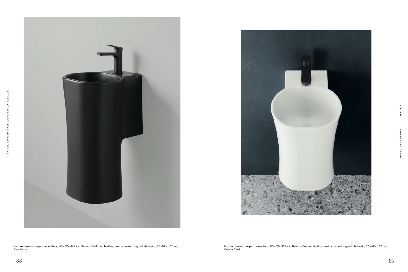 Nativo, lavabo sospeso monoforo, 35×37×H62 cm, finitura Carbone. Nativo, wall-mounted single-hole basin, 35×37×H62 cm,
