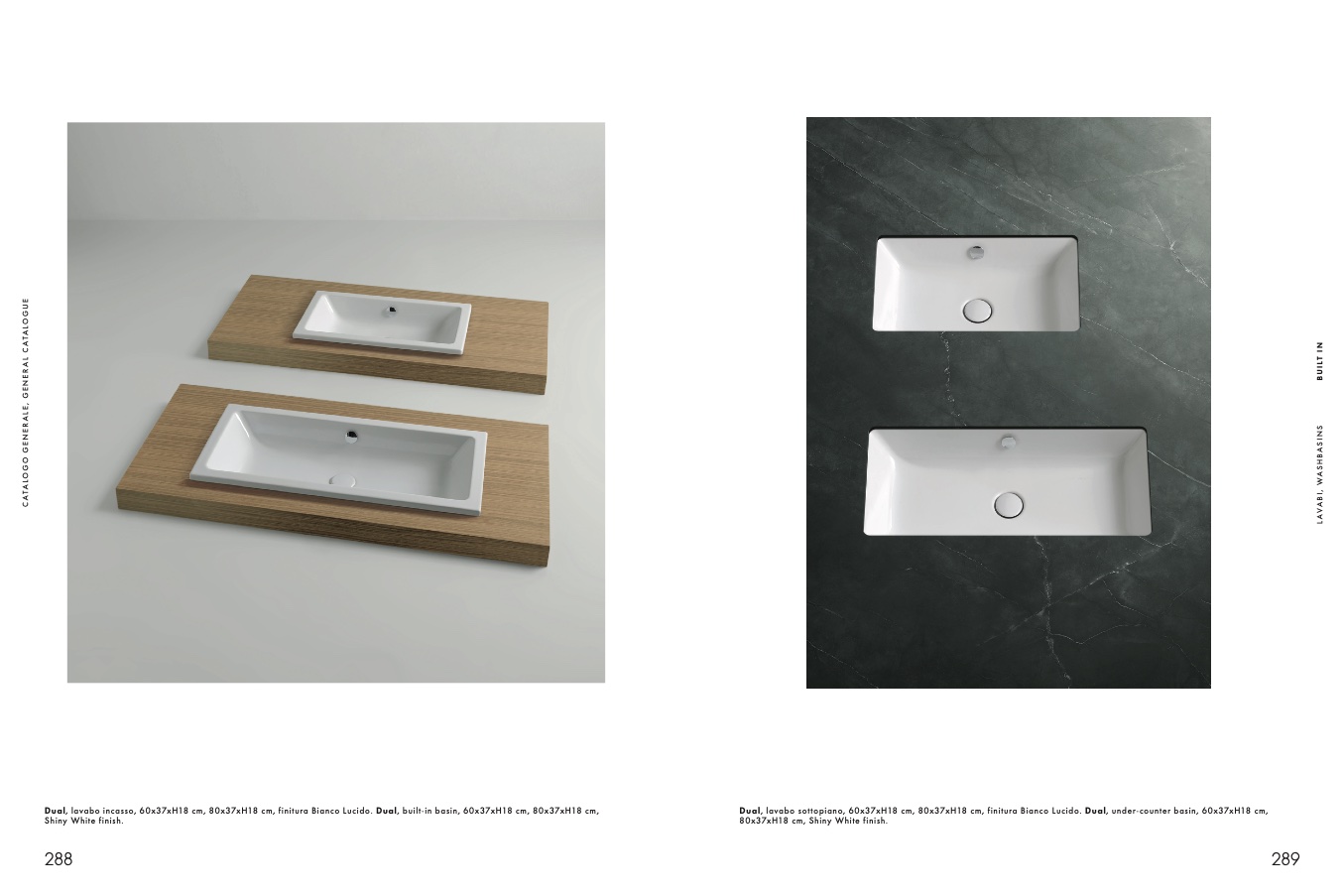 Dual, lavabo incasso, 60x37xH18 cm, 80x37xH18 cm, finitura Bianco Lucido. Dual, built-in basin, 60x37xH18 cm, 80x37xH18 cm,