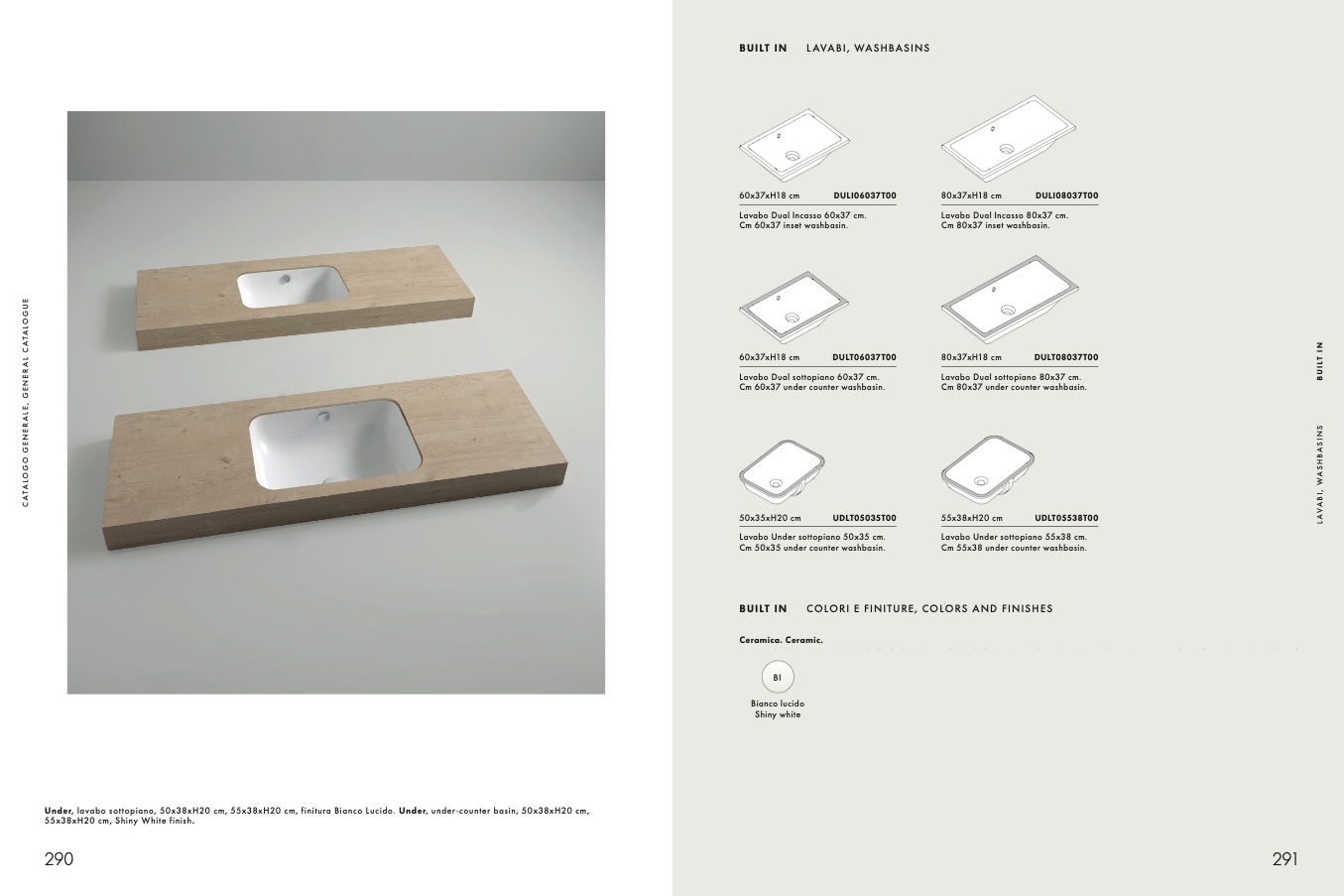 Under, lavabo sottopiano, 50x38xH20 cm, 55x38xH20 cm, finitura Bianco Lucido. Under, under-counter basin, 50x38xH20 cm,