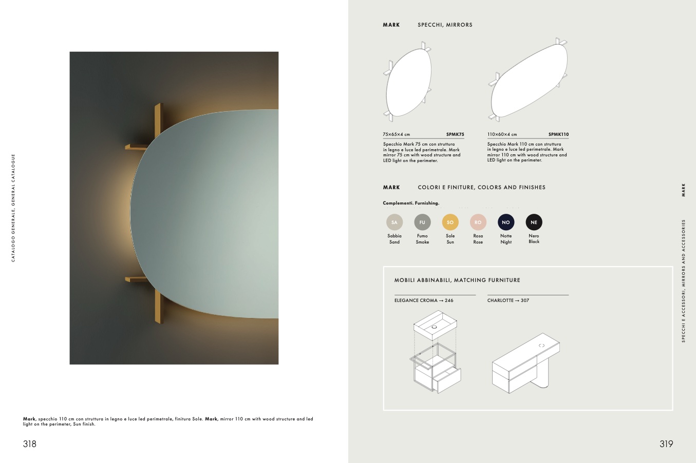 Mark, specchio 110 cm con struttura in legno e luce led perimetrale, finitura Sole. Mark, mirror 110 cm with wood structure and led
